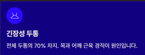 | 긴장성 두통 | 뒷목에서 시작되는 조이는 통증 | 장시간 같은 자세 유지 | ★☆☆ |