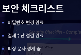 비밀번호 변경, 결제수단 점검, 피싱 문자 주의, 본인인증 기록 확인, 계정 정보 점검, 2단계 인증 설정, 개인통관고유부호 재발급.